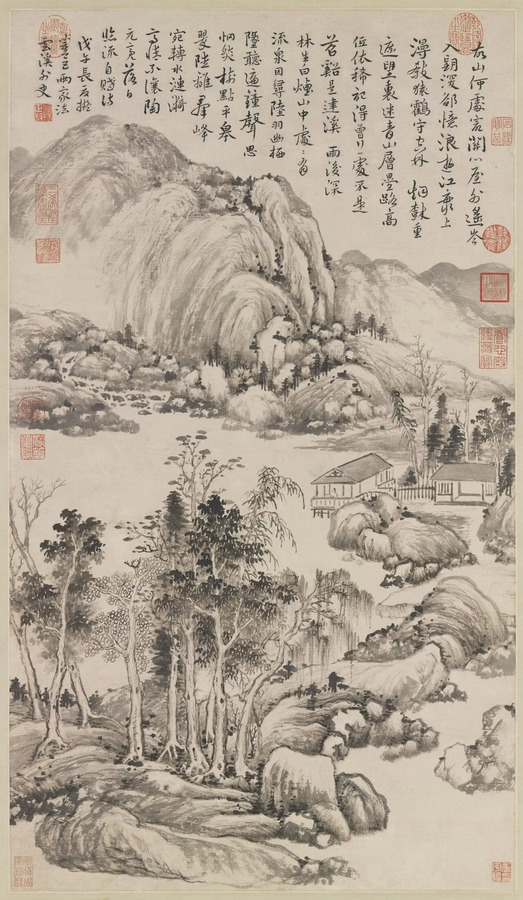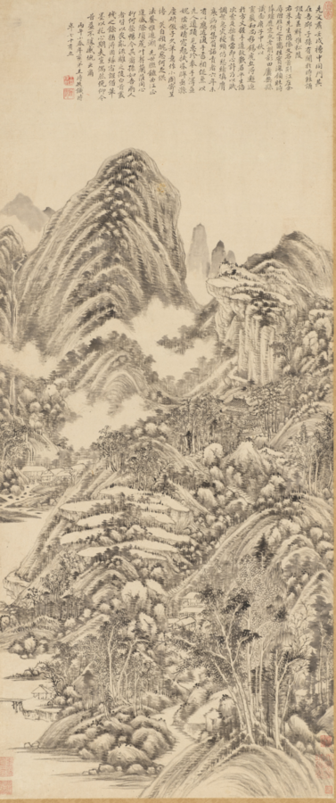 ① 왕시민(王時敏, 1592–1680) <방황공망산수도仿黃公望山水圖> 1666, 종이에 먹, 134.6×56.5cm, 뉴욕 메트로폴리탄미술관